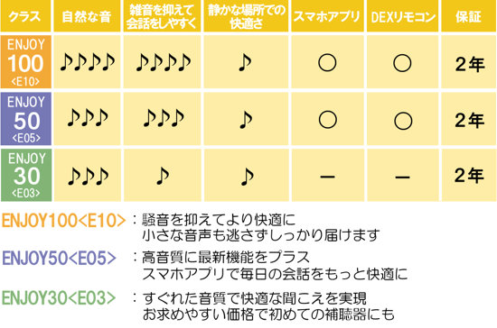 毎日のことだから、補聴器をもっと気軽に使いたい。そんな声にお応えして、自然な音質とお求めやすい価格を実現しました。スマホアプリで操作もらくらく。ENJOY[エンジョイ]は使うのが楽しくなる補聴器です。