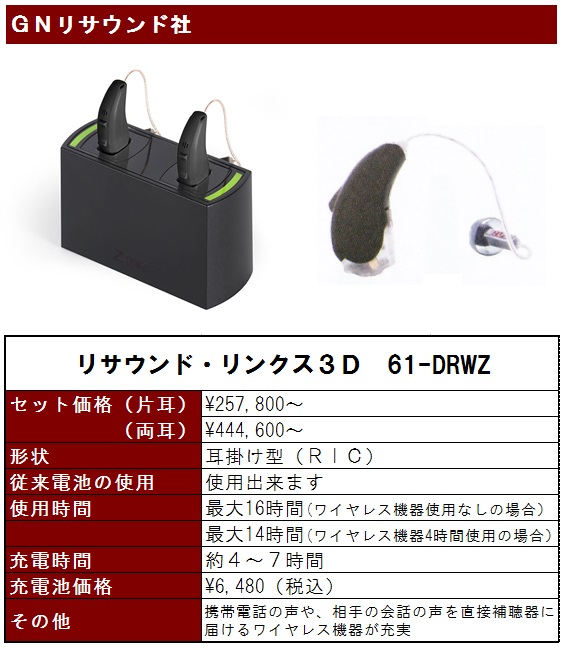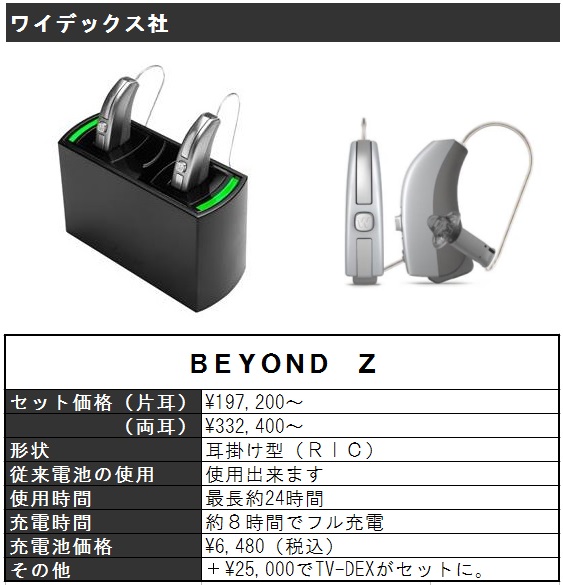 (今回未掲載のメーカーも、充電池式補聴器を次々と発売しております。)